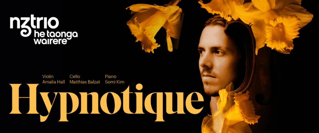 Hypnotique presents a diverse array of works that challenges expectations of traditional chamber music. Uzbek-born Australian composer Elena Kats-Chernin pays homage to Haydn, blending classical and contemporary styles in Calliope Dreaming, ahead of Fauré’s Piano Trio in D minor with lyrical elegance and lush harmonic textures, contrasting with the percussive and electronic influences in Le Boeuf’s jazz-adjacent Obliquely Wrecked. A whirlwind of motion typifies NZ composer Lyell Cresswell’s virtuosic Moto Perpetuo, then finally, the full Romantic immersion of Schönberg’s Verklärte Nacht is structured around the five stanzas of a poem; deeply transcendent and utterly beautiful.